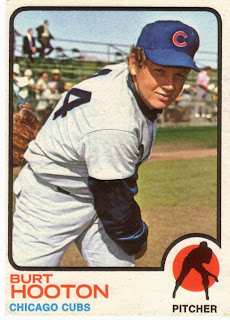 Hooton got off to an incredible start in his big league career. He came up at the end of the 1971 season and had three tremendous starts (2-0, two complete games, one shutout, 22 Ks in 21 innings). In fact, he was so good, the Cubs felt they could afford to trade Ken Holtzman in the offseason. It sure looked good early when Hooton used his incredible knuckle-curve to pitch a no-hitter in his fourth career start. In fact, he pitched well the entire 1972 season, despite going only 11-14. (Photo: Burt Hooton 1973 Topps Baseball Card)